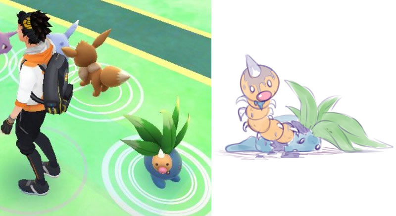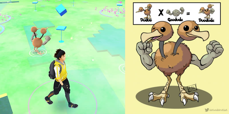 Não bem exatamente uma fusão pokémon, mas os erros no Pokémon Go que fazem surgir dois monstros no mesmo espaço estão sendo base para a imaginação de alguns artistas internet afora.